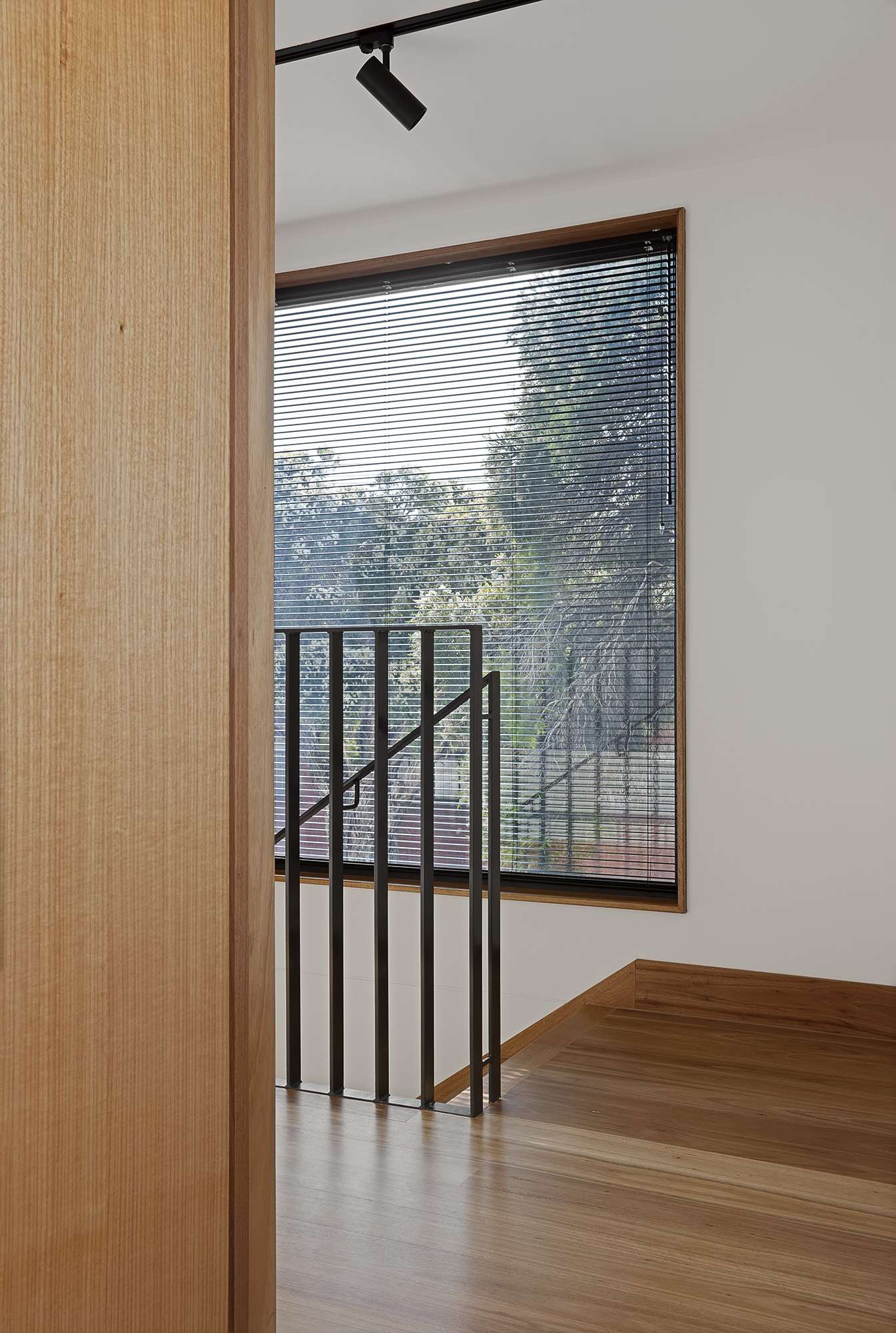 The “tuck shop” window that was the old window facing the side street in the dining space has been reinterpreted in the form of the new kitchen window facing the same side street. The window is located such that it provides elevated view of the street, with interaction with passers by. Privacy can be readily controlled via internal blinds when required. The new window to the upper stair provides a similar controllable view that overlooks the side street and the greater neighbourhood.