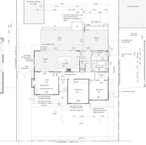The living spaces integrate with the garden and deck areas to the north and south. This provides for a significant area of outdoor living (decks) and garden area.